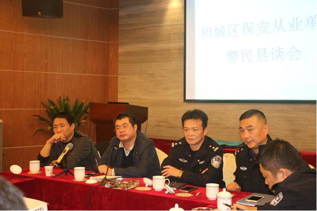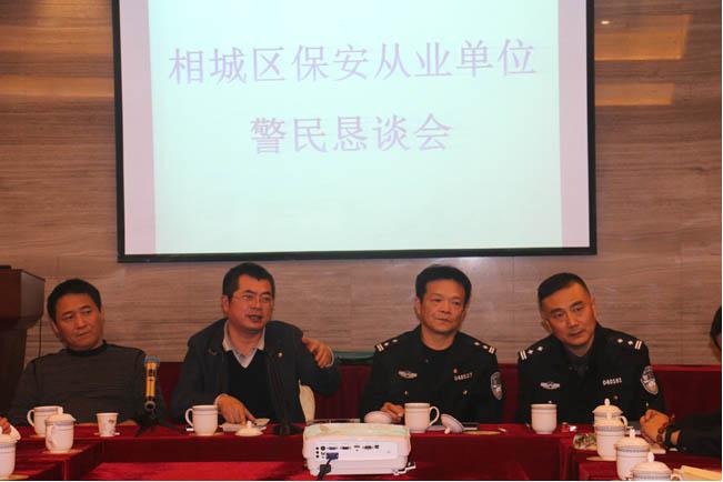 2015年11月19日14:30在江蘇康平保安公司會議室舉行:相城區(qū)保安從業(yè)單位警民懇談會,與會的有市公安局治安支隊保安監(jiān)管大隊的朱大、戴大,公安相城分局治安大隊的楊大、賀大、吳警官,還有相城區(qū)各保安行業(yè)的企業(yè),通過懇談會,深刻領悟市局、分局領導有關指示精神!今年10月—12月省公安廳開展保安市場專項整治活動,公司積極做好:治安信息員、法制宣傳員、義務巡邏隊員工作,爭取完成省公安廳要求2016年6月底前所有在崗保安員必須持證上崗的指示,向兄弟單位學習,不斷完善服務質量,提高公司核心競爭力,走品牌化道路的戰(zhàn)略目標前行!